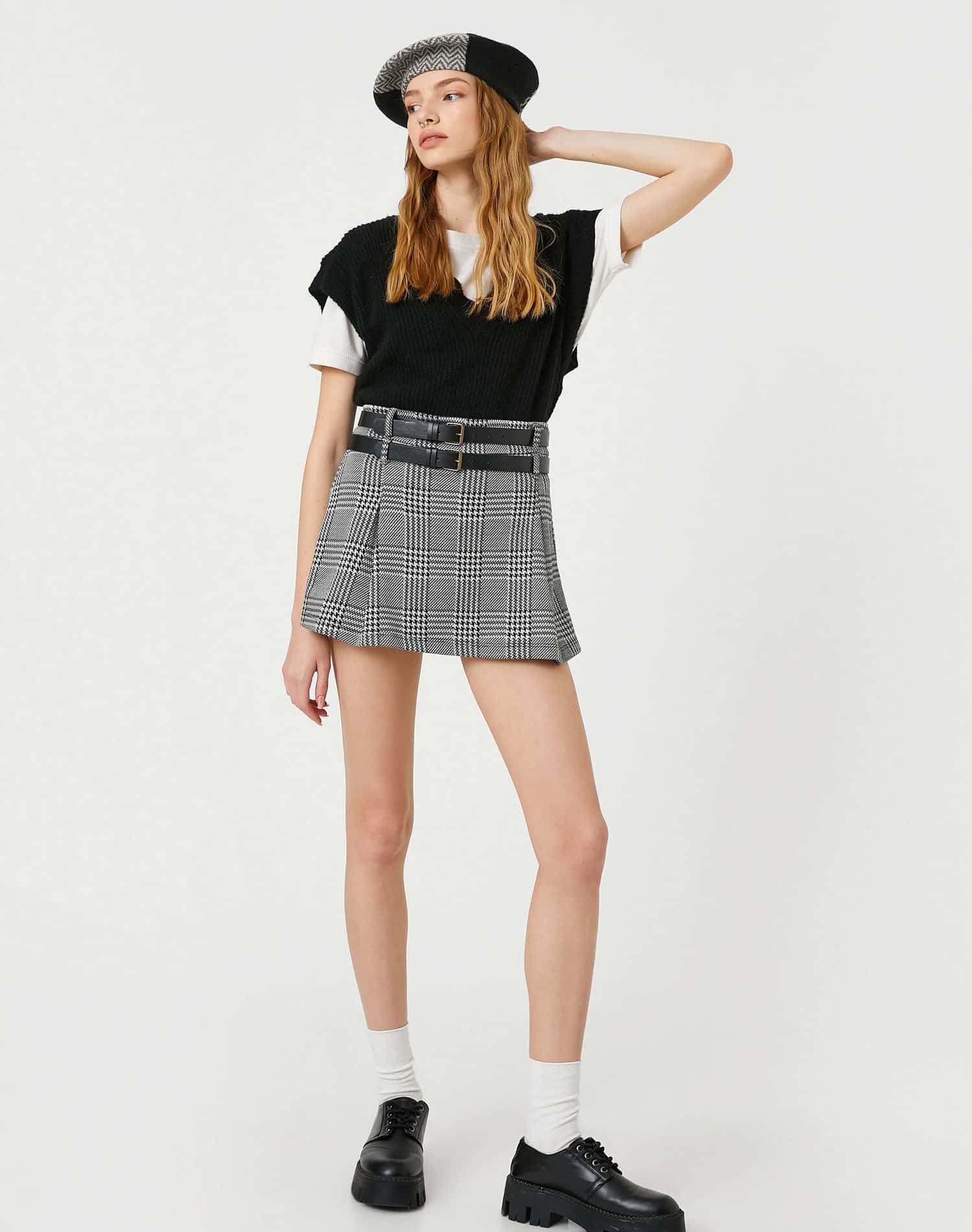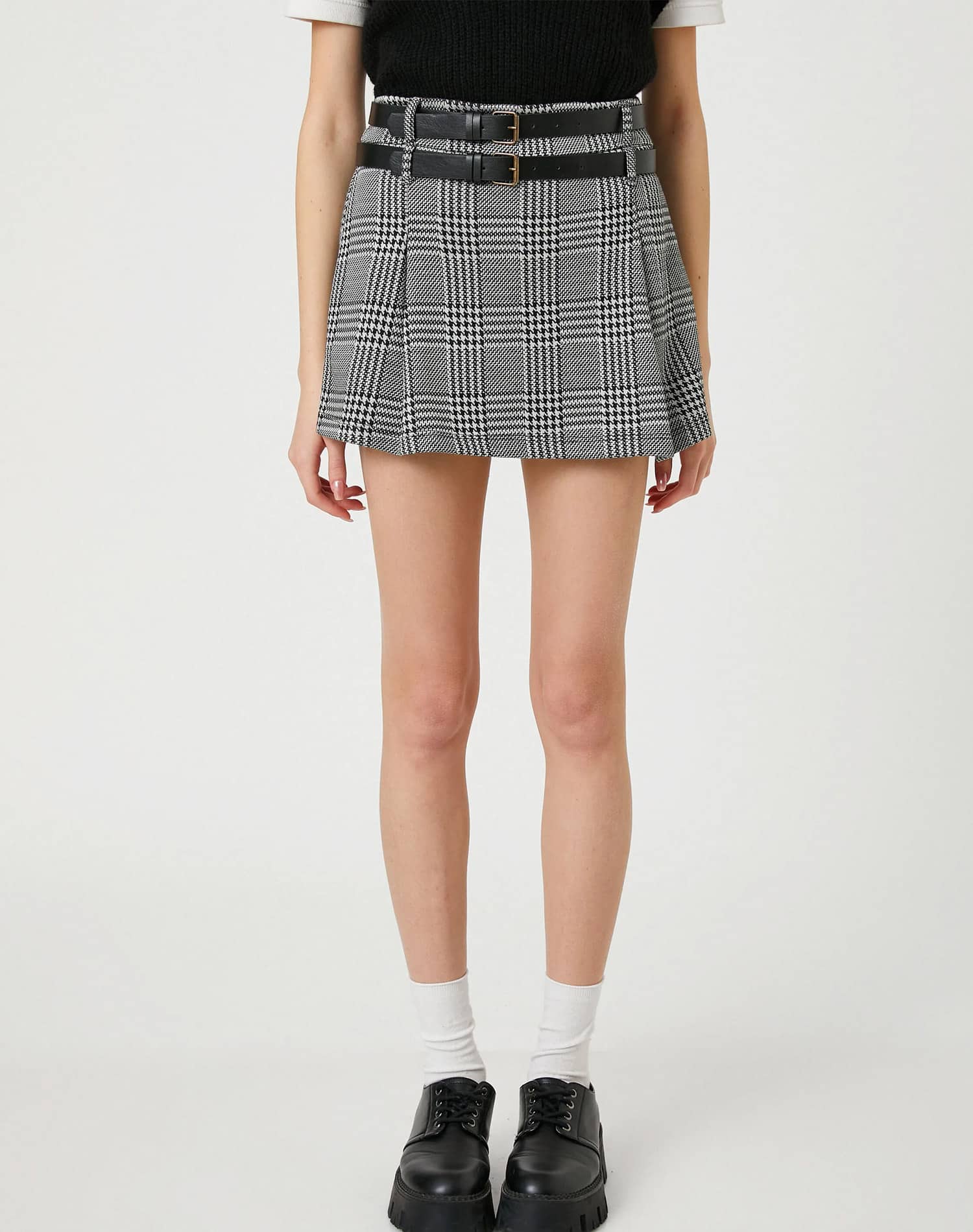 3 reviews for Short Skirt Double Belt Detailed Wide Pleated